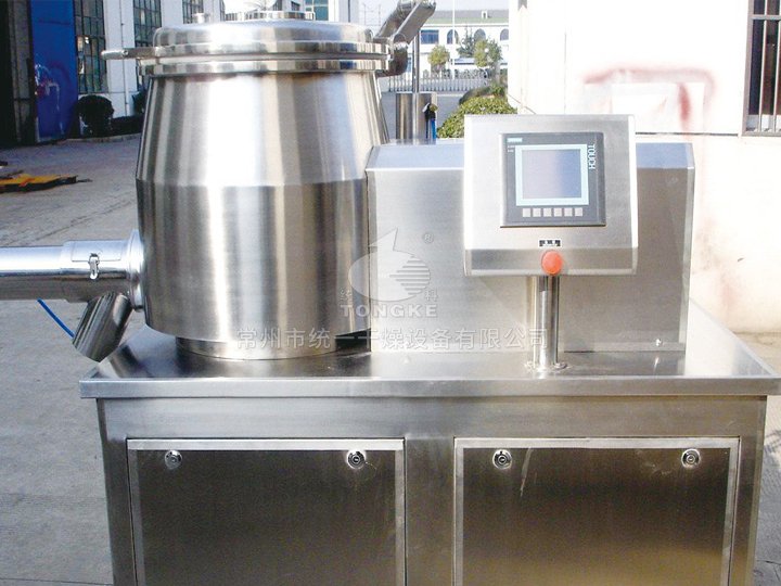 粉體物料與粘合劑在圓筒形容器中由底部混合漿充分混合成濕潤軟材,然后由側(cè)置的高速粉碎槳切割成均勻的濕顆粒。